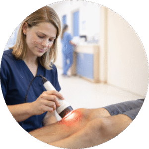 Think of laser therapy as a “boost” for your body’s natural healing process. We use a specialized medical laser that sends soothing light energy deep into your painful muscles or joints.